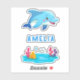 Sticker Nom des animaux de mer dauphins mignons. Joli dauphins souriants dans le style dessin animé. Customisez le nom sur les autocollants. Autocollants personnalisées amusants et mignons pour dauphins pour une fille ou un garçon.