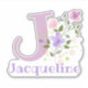 Personnalisez n'importe quel article avec un nom et une initiale avec un autocollant de découpe Floral Design. Le nom de l'exemple est Jacqueline.