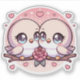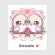 Deux charmantes tourterelles de style chibi s'asseyant sur une branche avec un rose entre elles, entourées d'un arrière - plan rose plein de coeur. Idéal pour la Saint-Valentin, les anniversaires ou toute occasion romantique.