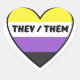 Sticker for representing the non-binary flag inside a heart. Great gift for reminding others of the preferred identity pronouns, in this case, they/them. Sticker displays the flag with a heart as a reminder of the love that exists between the non-binary individual and those that love them. Use these stickers on multiple items like laptops or tablets, notebooks, skateboards and other miscellaneous items. There is a matching mug in the "Mugs" category of the store!