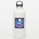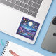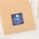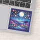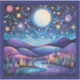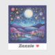 Collier autocollant avec une belle illustration. L'ambiance fantaisiste et fantaisiste. Une grande lune brillante avec des étoiles tout autour. Perché sur un beau paysage d'arbres, de montagnes et d'une rivière sinueuse. Impressionnant mystique magique.