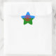 Drapeau voyageur tzigane officiel Romany de vert et bleu représentant la terre et le ciel avec une roue de wagon rouge, représentant Voyage.