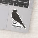 Un oiseau canari assis regarde en arrière. Sticker avec texte personnalisé.