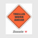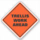 Un panneau de route classique orange de prudence en diamant avertit que les treillis travaillent en avance dans une police noire sans serif épaisse. Un jeu de jeu de mots sur les mots d'un panneau classique, route à venir, humour de jardin, architecture de clôture, pour purgola ou plantes.