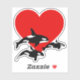 Autocollant d'épaulard cool Orca. Orca baleines nageant au-dessus d'un grand coeur d'amour lu. J'aime les orques. Cadeau amoureux de baleines orques.
