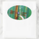 Sticker Ovale A teal Eyed Dragonfly with cattails