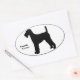 Une silhouette noire d'un Airedale Terrier, avec son nom de race. Excellent autocollants ovale amoureux de les chiens.