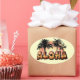 "ALOHA" aux couleurs du coucher du soleil, combiné à des silhouettes de palmiers.