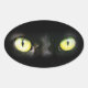Sticker Ovale Chat noir, Yellow Green Eyes, sobre et Éffrayant