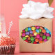Bright, colourful and vibrant, this design of rainbow chocolate, candy covered confectionary is perfect for Easter and a fun and playful design for any lover of chocolate, lollies or candy.