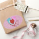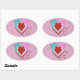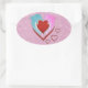 Sticker Ovale Dauphins bleu rose mignons tenant un coeur rouge