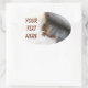 Sticker Ovale Écureuil sur un banc et quelques noix