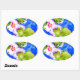 Sticker Ovale Elégant jardin fleuri rose blanc aquarelle