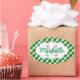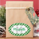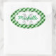 Sticker Ovale Élégant Vert En vichy Motif Nom personnalisé
