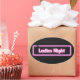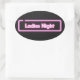 Les mots Soirée Dames inscrits en rose néon brillant sur un autocollant ovale.