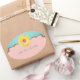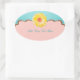 Cet autocollant ovale présente un arrière - plan bleu rose et turquoise avec une marguerite Gerber jaune. Le texte personnalisable vous permet d'ajouter votre propre message.