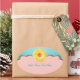 Sticker Ovale Faisée jaune sur rose et Turquoise personnalisable