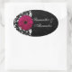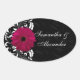 Sticker Ovale Fuchsia Scroll Gerbera Daisy avec noir et blanc