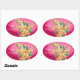 STICKER OVALE FUCHSIE ROSE ÉLÉGANTE OEUF DE PÂQUES ET FLEURS JAU