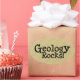 "Geology Rocks !" sur un dessous de verre avec un arrière - plan marteau marron. Un design de base qui dit tout !