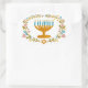 Sticker Ovale HANOUKKA Menorah couronne florale Juive Holiday