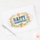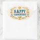 Sticker Ovale HAPPY HANOUKKA fleurie couronne Juive Holiday
