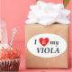 Parlez au monde de votre belle alto ! L'expression "I Love My Viola", avec un symbole cardiaque comme mot "amour", dit tout. Le lettrage en italique noir donne un aspect classieux—et, surtout, une clef en alto blanche sur un personnel est intégrée dans le coeur. Parfait pour tous les violeurs !