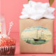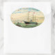 Illustration de voyage vintage faisant la promotion de l'Inman Steamship Company, montrant un premier bateau à vapeur d'une conception de transition avec gréement à la voile avec des cheminées fumées.