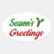 Sticker Ovale Joyeuses Fêtes Holly Noël rouge vert