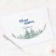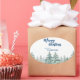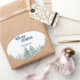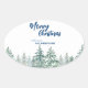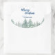 Sticker Ovale Joyeux Noël arbres forêt Aquarelle script