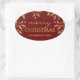 Élégant Stickers Nom ovale personnalisé de Noël - Personnalisez-le avec votre famille ou prénom. Branches saintes et baies élégantes dans un effet métallique faux or étonnant sur l'arrière - plan rouge. Ajoutez simplement votre nom ou votre salutation personnalisée pour les cadeaux faits à la main et les enveloppes postales. Cliquez sur Customiser pour modifier la couleur ou le style de police de l'arrière - plan. Coordination des cartes de correspondance, timbres-poste, autocollants, cadeaux tendance et faveurs de fête et accessoires disponibles en magasin.