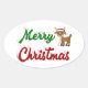 Sticker Ovale Joyeux Noël Reindeer rouge vert script