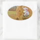 Sticker Ovale Lapin blanc et cheval jaune blond