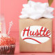 Le mot "hustle" en rouge avec des ombres tombantes en noir. Design original.