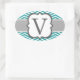 Sticker Ovale LETTRE turquoise MONÂTRE BLANC V Chevron