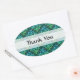 Un ensemble d'autocollants ovales "Merci" d'un noeud Celtique bleu-vert répété la conception de carreaux de diamant contre un arrière - plan noir. Ou, customisez "Merci" avec votre propre message ! Aussi disponible sous d'autres formes !