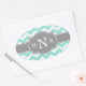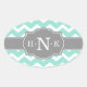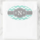 Sticker Ovale Monogramme Gris Chevron à la menthe