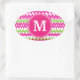 Sticker Ovale Monogramme personnalisé Motif tribal Pink Chevron