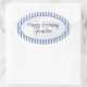 Cette conception géométrique a un simple motif de rayures dans l'arrière - plan créant un look propre avec des rayures verticales bleues et blanches. "Joyeux Anniversaire" est imprimé au centre avec un modèle texte pour faciliter la personnalisation avec votre nom, initiale ou monogramme. Il y a un nombre caché derrière le texte central pour votre âge subtil, qui a également un modèle de texte pour faciliter la modification ou la suppression du nombre. Ce design bleu et blanc est une idée amusante pour envelopper des cadeaux ou sceller des enveloppes pour une fête d'anniversaire. Le design générique est également adapté à toutes les occasions, pour tous les âges et pour tous les genres.