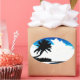 Sticker Ovale Palmier blanc noir bleu Silhouette