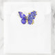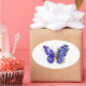Bijoux, bleu, saphir, papillon aux fleurs pétillantes avec aile décorée de bleu, fleurs précieuses avec feuilles d'or sur arrière - plan blanc.