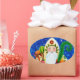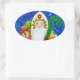 STICKER OVALE PRIMITIVE FOLKART BALTIMORE QUILT PÈRE NOËL