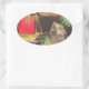 Sticker Ovale Red Sailboat Paysage peinture à l'huile Imprimer