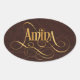 Sticker Ovale Script Tourbillonnant personnalisé Amina Gold en c
