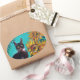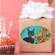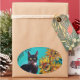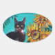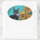 STICKER OVALE SOUCHES AVEC CHAT NOIR EN TURQUOISE BLEUE