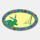 Sticker Ovale Stick de lapin de Pâques et oeufs Roses Monogramme