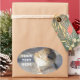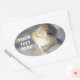 Portrait avant d'un moineau de maison avec une graine de tournesol dans son bec et une pose déterminée. Il a gagné la semence. Autocollant ovale amusant. Personnalisable . Vous pouvez modifier l'image et modifier ou supprimer le texte modèle.