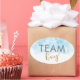 Demandez à votre sexe de révéler aux invités de la fête de voter pour le genre du bébé avec ces autocollants amusants. Ce design moderne comporte les mots "Team boy" et est accentué par la calligraphie de parties scintillant d'or sur l'arrière - plan d'aquarelle bleue.