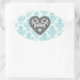 Sticker Ovale Turquoise Damask Coeur Enveloppe Sceau Fête Favori