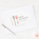 Coordonnée avec le modèle "WHISK SPOON SPATULA LOGO II pour boulangerie, Carte de visite de restauration" à 1201h. Un trio d'ustensiles de cuisine communs avec votre nom ou nom de société fait le logo parfait sur ces autocollants personnalisés. Parfait pour sceller l'emballage alimentaire, sur les boîtes à gâteaux, ou coller sur les enveloppes et les enveloppes pour montrer rapidement votre marque et le nom de votre entreprise. © 1201AM CREATIVE